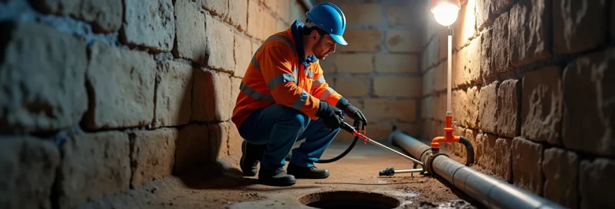 Les infiltrations silencieuses constituent le premier risque invisible. Une canalisation partiellement obstruée ou endommagée durant une tentative de débouchage amateur laisse s’échapper de l’eau dans les structures environnantes. Ces fuites microscopiques saturent progressivement l’isolant, pénètrent les murs et atteignent les fondations avant que toute trace visible n’alerte le propriétaire.